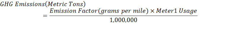 CH4 On-Road: The CH4 g/mi value from the database times the Meter 1 Usage in the specified date range divided by 1000000.